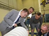 Представители польских компаний PSE S.A. и Eltel Networks на участке изготовления внешней полимерной изоляции высоковольтных вводов