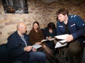 Участники Английского разговорного клуба компании «Изолятор» отрабатывают лексику устной речи и диалоги, связанные с перемещением по зарубежной стране