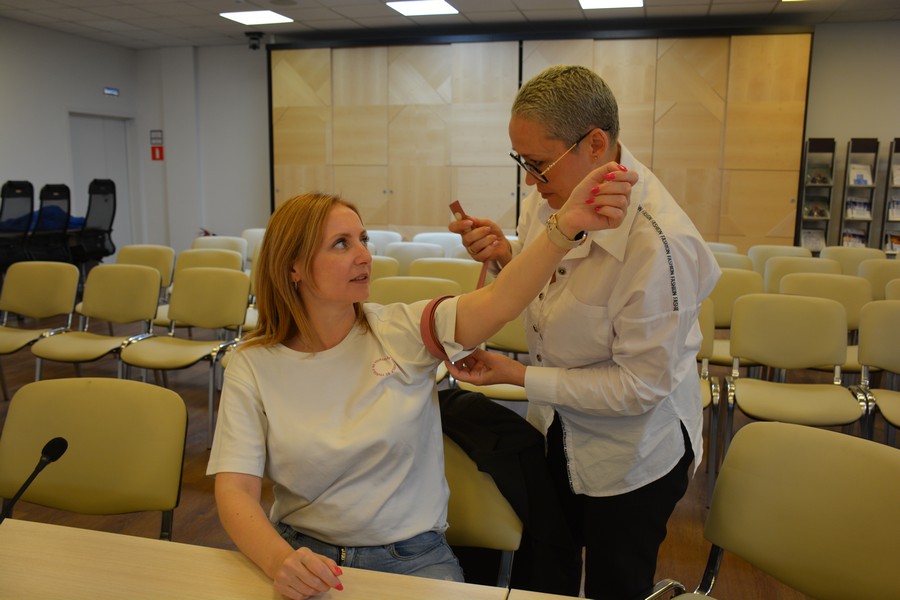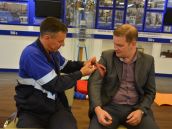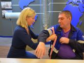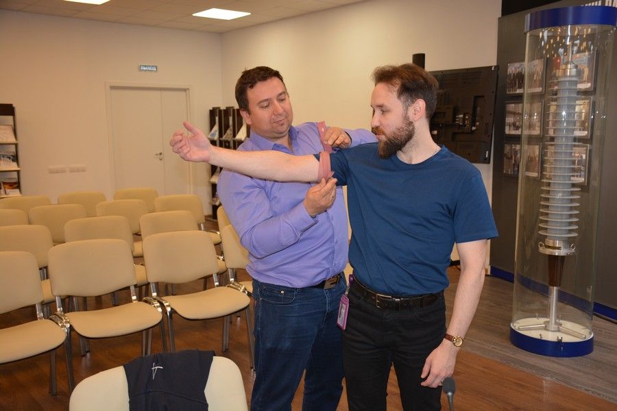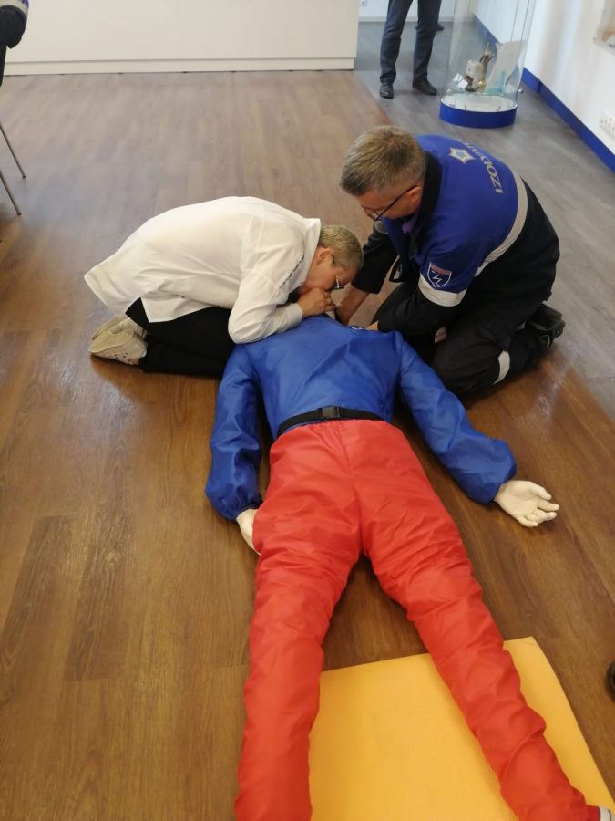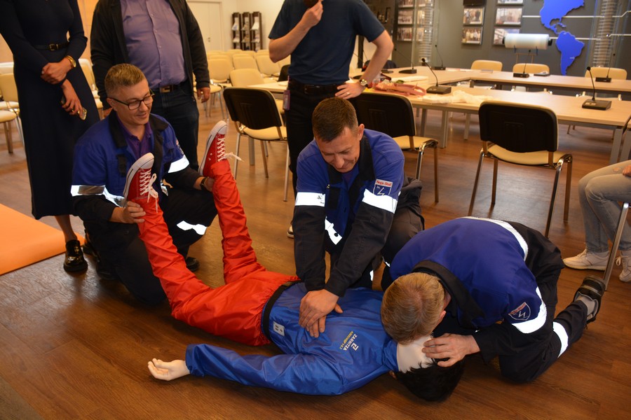 Практическое занятие в корпоративном университете «Изолятор» для работников завода «Изолятор-АКС» по курсу «Оказание первой помощи пострадавшим». Отрабатываются непрямой массаж сердца и искусственная вентиляция легких