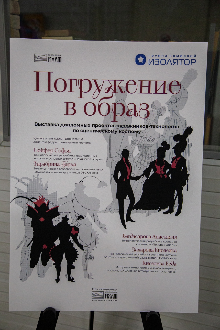 10 сентября 2025 года в производственном комплексе группы компаний «Изолятор» состоялось торжественное открытие выставки дипломных проектов по сценическому костюму выпускников кафедры сценического костюма факультета сценографии и театральной технологии Школы-студии (института) имени Вл. И. Немировича-Данченко при Московском Художественном академическом театре имени А. П. Чехова.