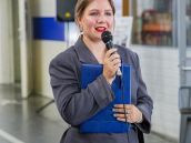 Руководитель департамента по коммуникациям группы компаний «Изолятор» Анастасия Буракова открывает выставку